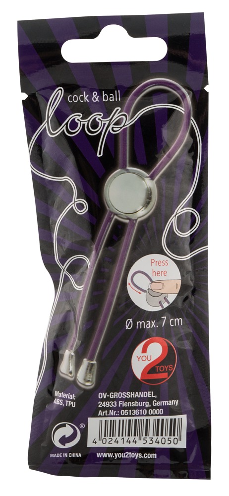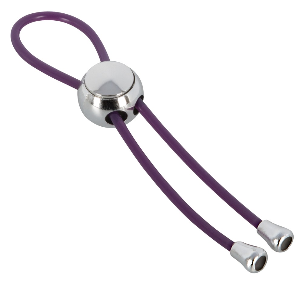 Pętla na penisa, która może być regulowana i mocowana za pomocą suwaka. Fioletowy/srebrny kolor.