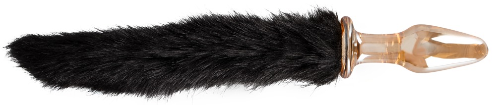Długość całkowita ok. 12 cm. Głębokość wsunięcia: 10,5 cm, średnica: 2,1-3,8 cm. Fałszywy ogon futerkowy: ok. 28 cm długości. Materiał: szkło, akryl.