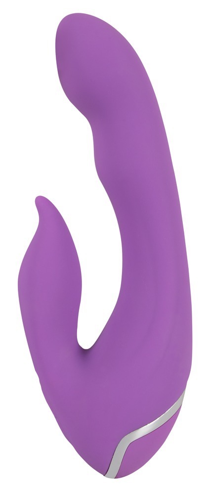 Silikonowy wibrator z ramieniem stymulującym łechtaczkę, każdy z silniczkiem. 7-stopniowa wibracja jest regulowana za pomocą pokrytych silikonem przycisków sterujących LED. (Baterie należy zamawiać oddzielnie: 2 x Micro/AAA).