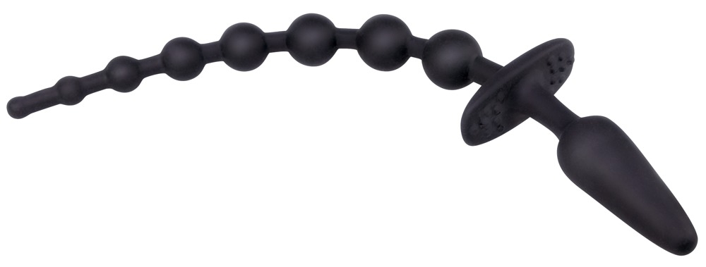 Z jednej strony anatomicznie idealnie ukształtowany korek odbytu z poręczną, szeroką, kolczastą podstawą, a z drugiej strony łańcuch kulowy z 7 kulkami różnej wielkości.