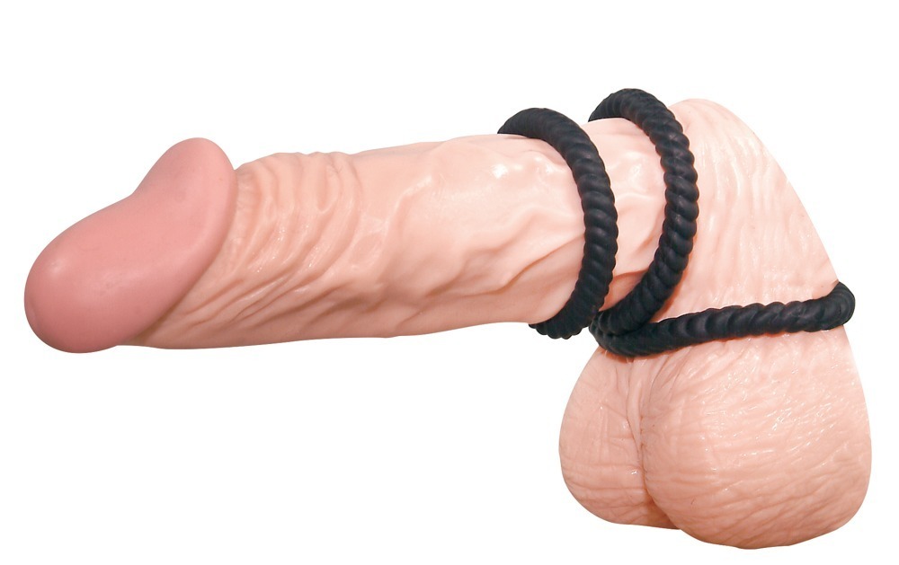 3 pierścienie penisa o strukturze rowkowej o różnych średnicach (2,6, 3,0 i 3,5 cm). Idealny również do sznurowania jąder. Może być używany pojedynczo lub w kombinacji. Materiał: silikon.