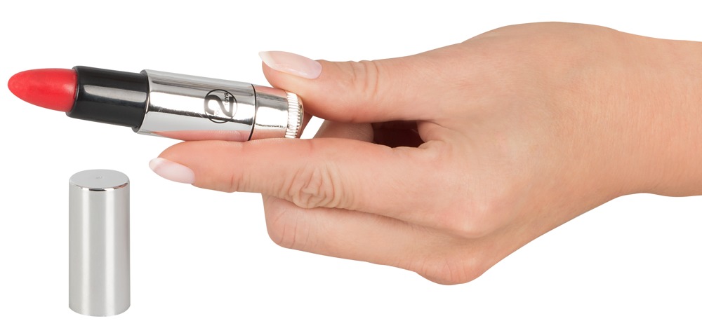 Mini wibrator w postaci szminki. Wibracje w małej miękkiej (językowej) końcówce są regulowane bezstopniowo - od miękkiej do twardej.