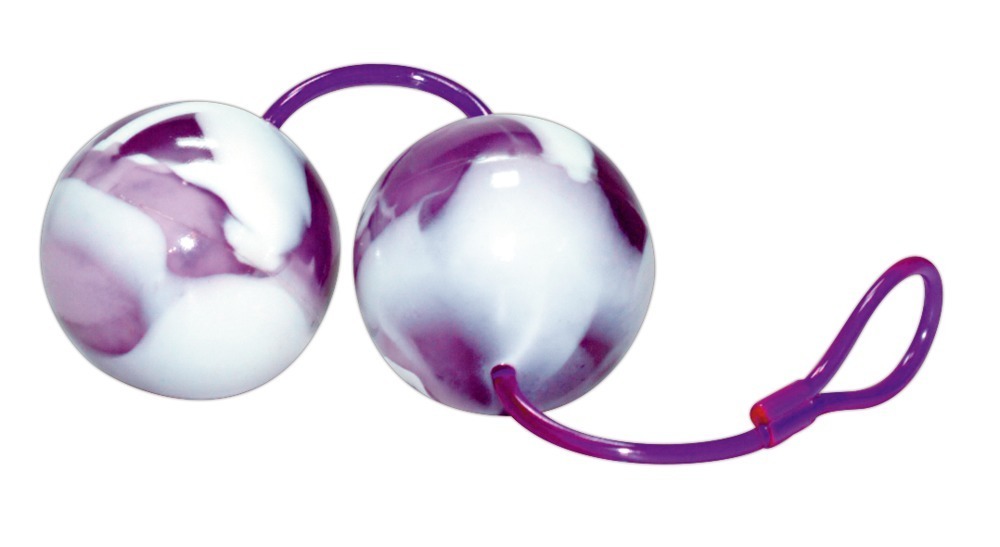 Wyjątkowo duży, cenny, marmurowy miłosny duet piłeczkowy z elastyczną taśmą powrotną. Piłki nadają się do efektywnego treningu dna miednicy: w środku ciężarki kulowe obracają się i przy każdym ruchu wywołują wibracje, które prowadzą do wzmocnienia skurczów mięśni. Dzięki swojej wadze 177 g, piłki miłosne są idealne dla już wyszkolonych ekspertów.