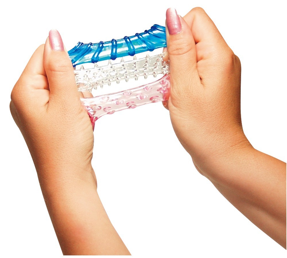 Te 3 miękkie sex mankiety wykonane z niezwykle elastycznego materiału szczelnie się zagnieżdżają i utrzymują HIM wysoko i w formie przez długi czas dzięki efektowi przekrwienia. A Tobie podobają się liczne, różne rowki pożądania i aktywne nuby, które orgazmicznie pobudzają nerwy pożądania z każdym wejściem i wyjściem! Nadaje się również do palców i wibratora!