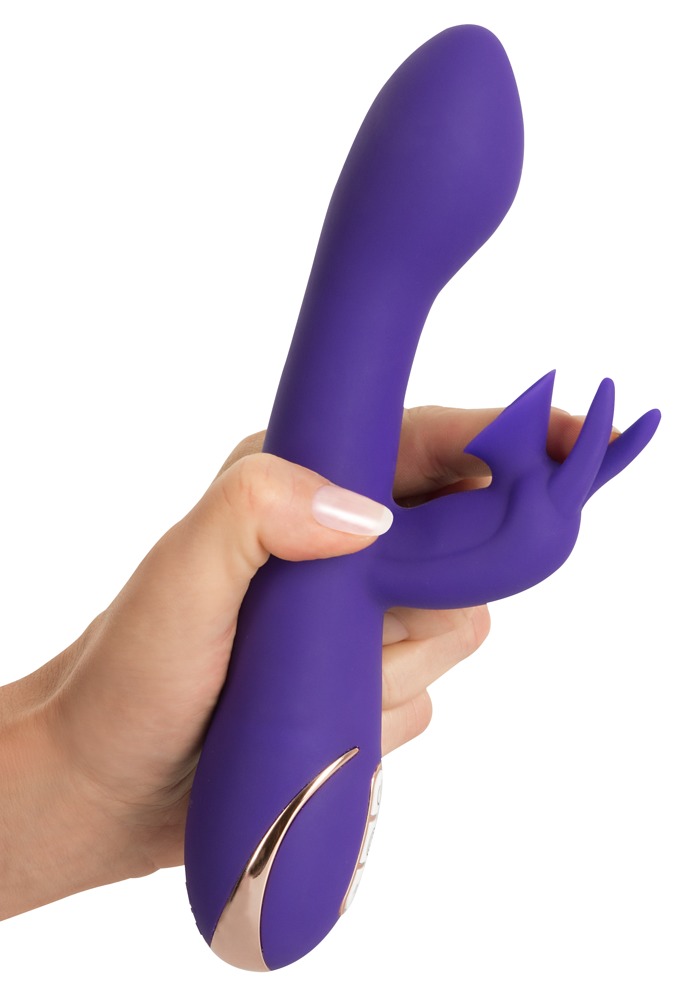 Ten króliczy wibrator z panelami dekoracyjnymi w kolorze miedzi oferuje pełny program rozpieszczania. Jego stymulator łechtaczki w kształcie królika jest wyposażony w dodatkową przyssawkę, która rozpieszcza łechtaczkę za pomocą 6 różnych trybów ssania - prawie jak prawdziwy seks oralny. Wał oferuje 7 trybów wibracji. Jest on lekko zakrzywiony i stymuluje punkt G swoim pogrubionym czubkiem. Przyjemność tę dopełnia aksamitnie miękki silikon. Wibrator królika jest wodoodporny i z systemem 3 przycisków szczególnie łatwy w użyciu. Wraz z kablem USB.