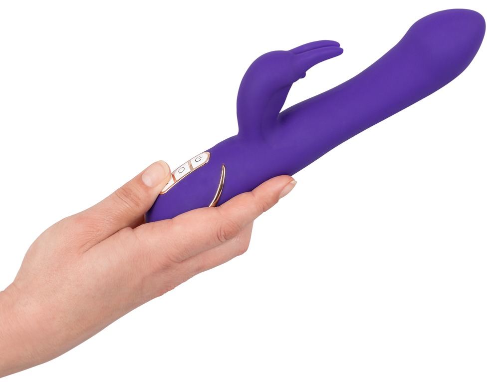 Ładowalny, wodoodporny wibrator królika z 2 silnikami i wykończeniami w kolorze srebrnym. Wałek ze wskazanymi żołędziami stymuluje pochwę ekscytującą kombinacją obrotów i wibracji - a wszystko to przy 3 prędkościach. Chmura: im szybciej obraca się końcówka wału, tym silniejsze stają się wibracje. Stymulator łechtaczki króliczej ma ruchome uszy i stymulujący nos. Rozpieszcza łechtaczkę kobiecą za pomocą 7 trybów wibracji. Wał i stymulator łechtaczki mogą być sterowane oddzielnie, co daje większe możliwości różnicowania. Z jedwabistą, miękką w dotyku powierzchnią i intuicyjnym, 3-przyciskowym sterowaniem. Kabel USB w zestawie.