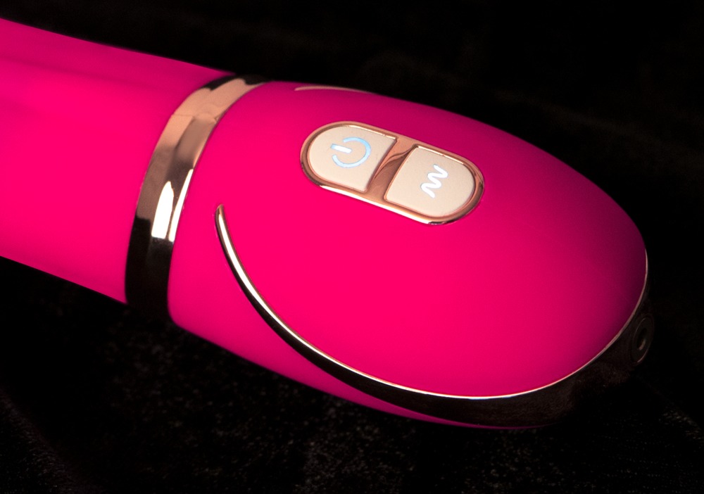 Ten fioletowy wibrator przekonuje nie tylko szlachetną optyką z elementami ozdobnymi w kolorze srebrnym, ale także umiejętnościami. W sumie siedem różnych wzorów wibracji jest ukrytych pod dwuwarstwową silikonową osłoną, co sprawia, że wibrator czuje się szczególnie miękki i realistyczny. Podniesiona linia wzdłuż wału daje mu to wyjątkowe, mrowienie dodatkowe. Włącz wibracje za jednym naciśnięciem przycisku i poczuj je w swoim punkcie G, który wibrator celowo osiąga i stymuluje. Więc możesz pozwolić sobie na orgazmowe rozpieszczanie!