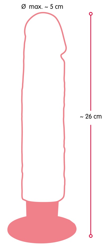 Długość całkowita 26 cm, głębokość wsunięcia 21,5 cm, Ø 4-5 cm. TPE, ABS, PVC.