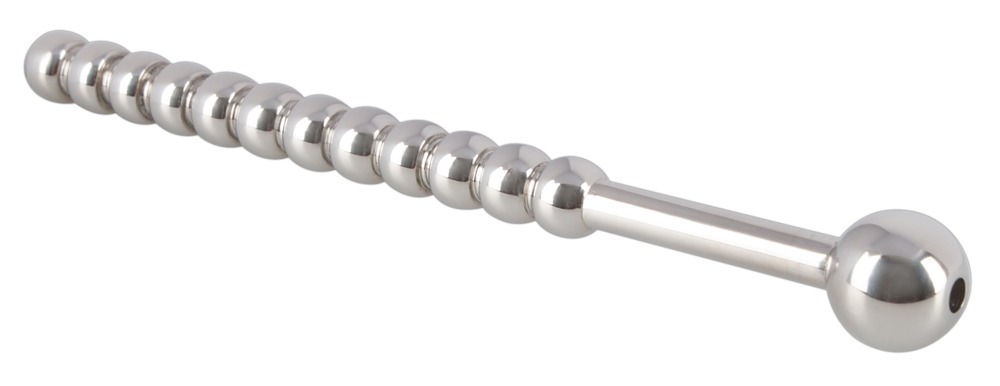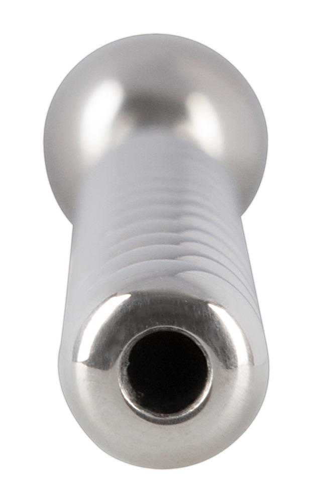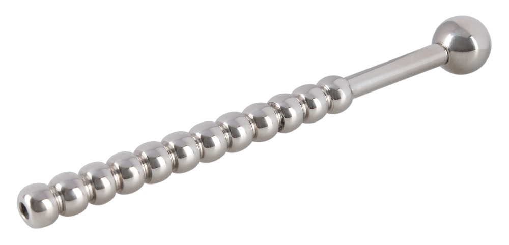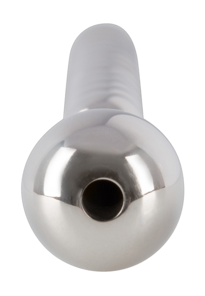Korek penisa o długości 14 cm, głębokości wsunięcia 12,4 cm, Ø 0,7-1 cm, kulka zamykająca Ø 1,6 cm. 54 g. Stal nierdzewna.