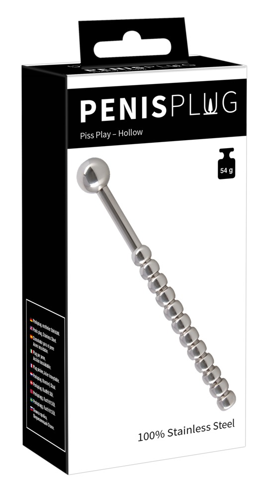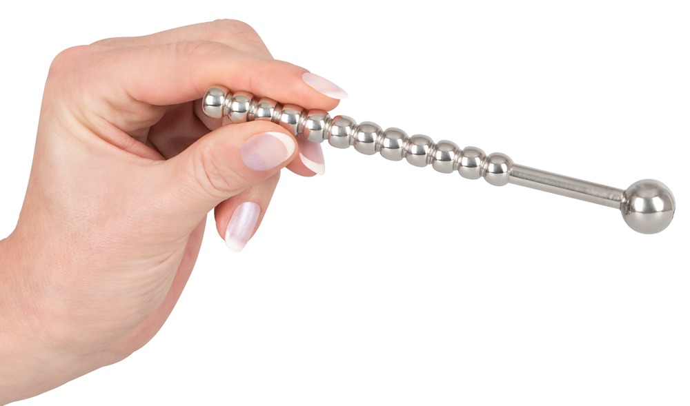 Srebrna, pusta w środku wtyczka do penisa z 12 kulkami stymulującymi i kulką zatrzymującą. Idealny do stosowania podczas ekscytujących gier z plemnikami i moczem.