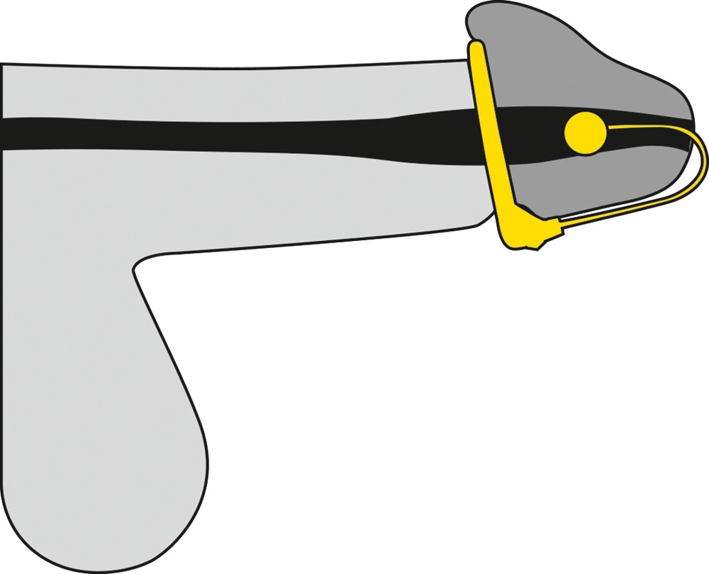 Strzemiączka z kulką 8 mm na pierścieniu żołędziowym. Uchwyt kulowy jest wkładany do cewki moczowej, głębokość wkładania 2,3 cm.