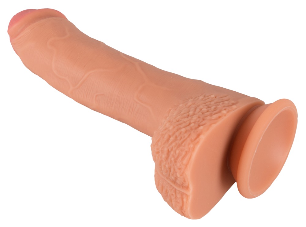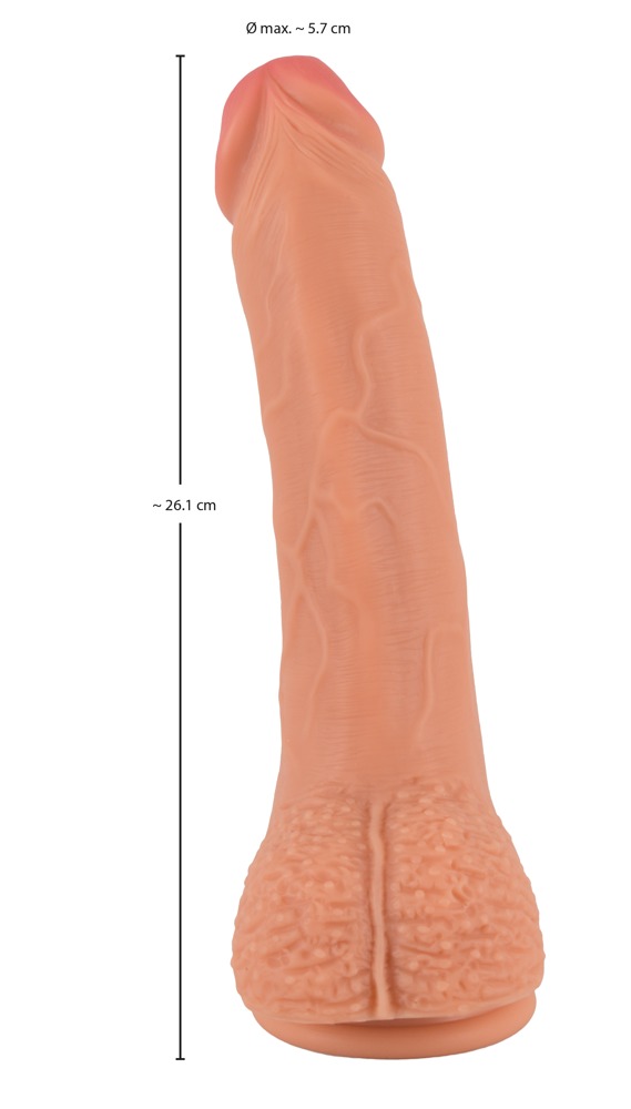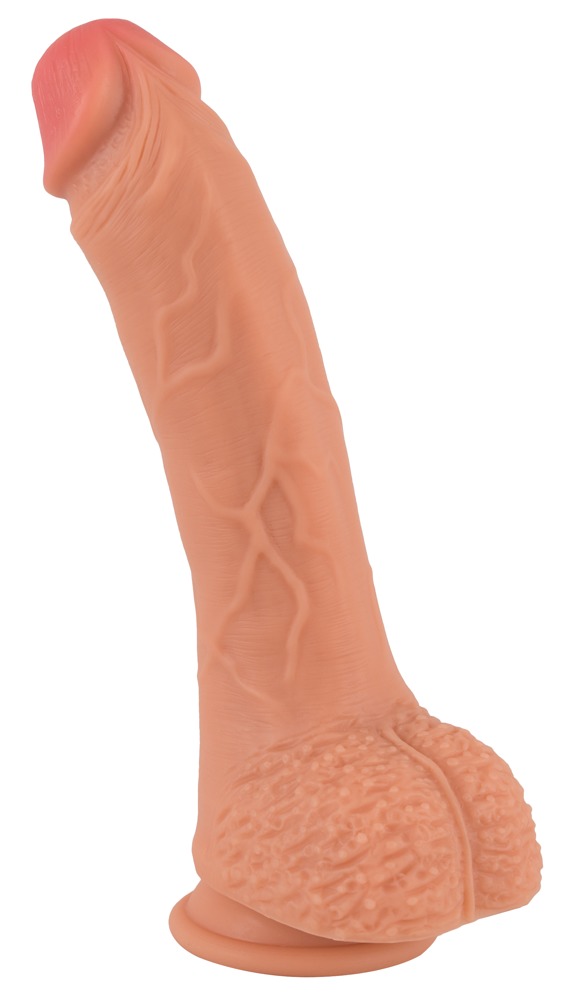 Naturalne dildo w kolorze skóry z puszystą żołędzią, żyłkami i jądrami dla intensywnie stymulującej tekstury powierzchni. Przyjemnie elastyczny i z przyssawką. Idealny do dzikich gier miłosnych wszelkiego rodzaju.