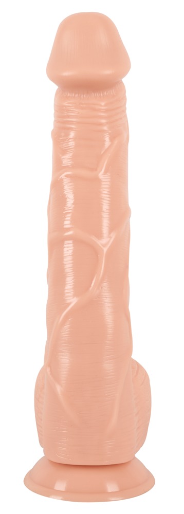 Bardzo duże i ciężkie naturalne dildo z nóżką ssącą i chwytliwymi jąderkami. Wybrzuszenia żołędzi i charakterystyczne żyłki tworzą powierzchnię intensywnie stymulującą. Inteligentny uniwersalny produkt na różne erotyczne okazje.