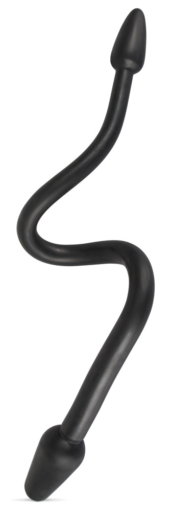 Elastyczne podwójne dildo z wtyczką na każdym końcu. W przypadku gier solowych dopochwowych i analnych wstęp, w przypadku gier dla dwóch osób każdy może skorzystać z jednej z wtyczek. Pięknie śliska powierzchnia. Czarny.
