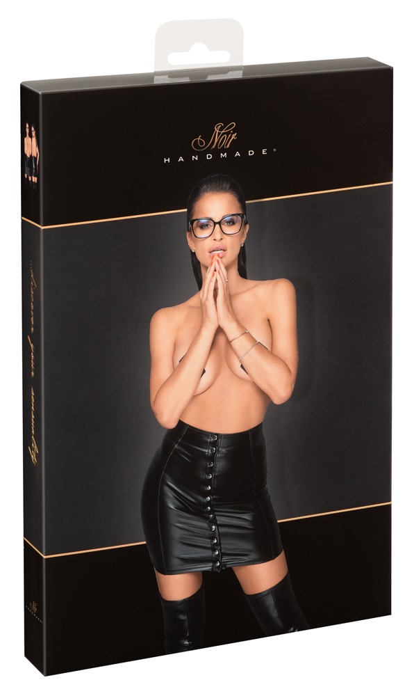 Skąpa mini spódniczka w kolorze czarnym, elastyczna, wodoodporna. Przód z zatrzaskowym paskiem na całej długości, który można błyskawicznie otworzyć.