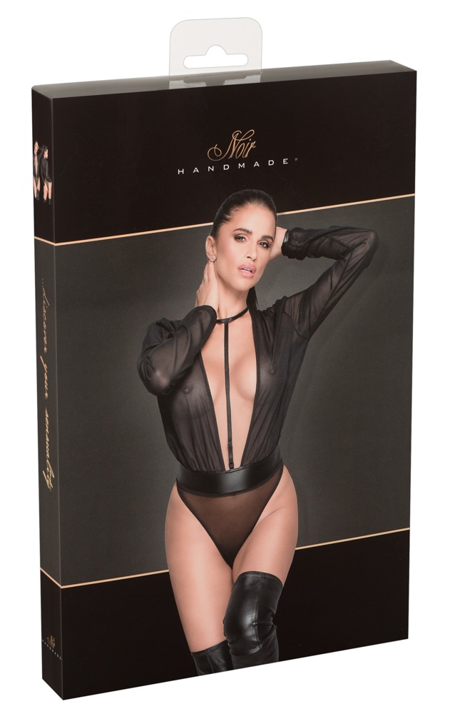 NOIR - PRZEZROCZYSTE BODY Z DŁUGIM RĘKAWEM I GŁĘBOKIM DEKOLTEM