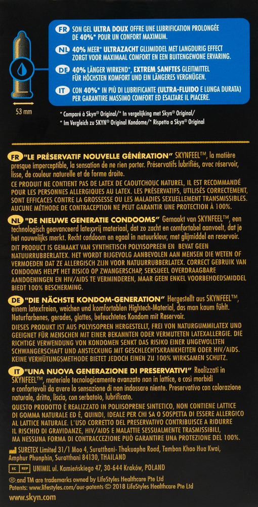 SKYN EXTRA LUBRICATED - PREZERWATYWY POWLEKANE WILGOTNE NA BAZIE SILIKONU 10SZT