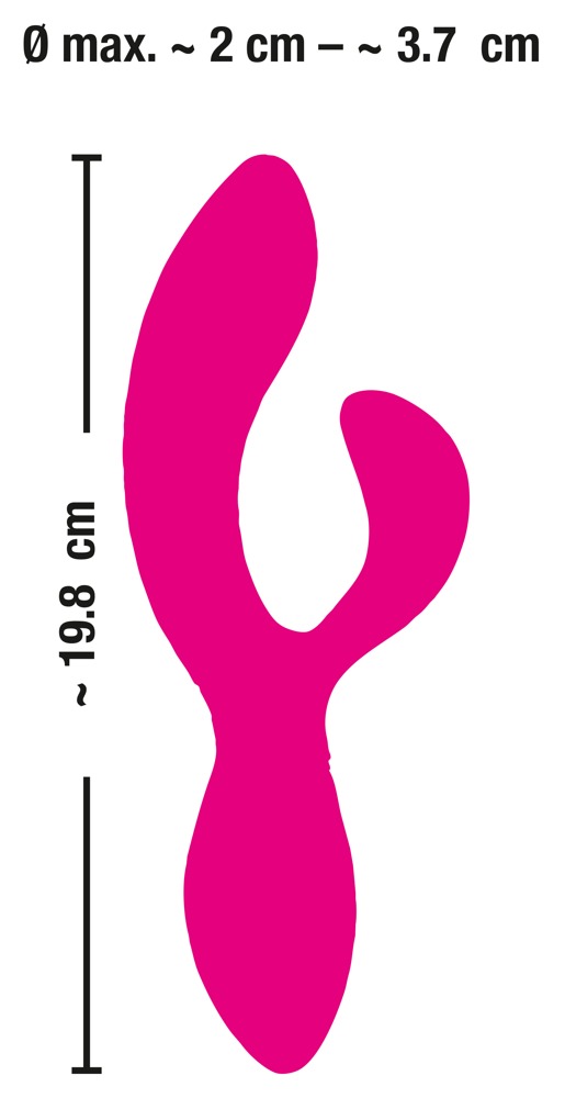 2 silniki - po jednym w każdym ramieniu - zapewniają 10 zróżnicowanych trybów wibracji, którymi można wygodnie sterować za pomocą przycisku. Wibrator wykonany jest na całym obwodzie z miękkiego silikonowego materiału i rozpieszcza bardzo przyjemnym uczuciem skóry. Ponieważ wibrator jest wodoodporny, nic nie stoi na przeszkodzie, aby czerpać przyjemność z wibracji nawet pod wodą.