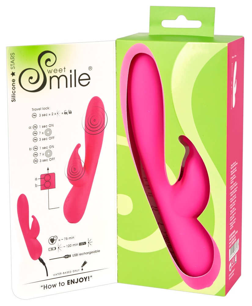 SWEET SMILE - SYLIKONOWY WIBRATOR KRÓLIKA DO STYMULACJI ŁECHTACZKI RÓŻOWY