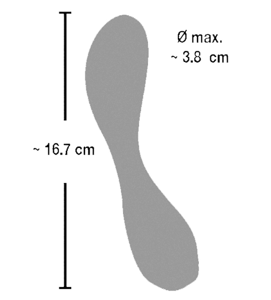 Długość całkowita 16,7 cm, Ø 2,1-3,8 cm. Materiał: Silikon z powłoką PU.