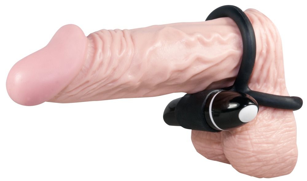 SWEET SMILE - PODWÓJNY CZARNY PIERŚCIEŃ NA PENISA Z VIBRO-BULLETEM