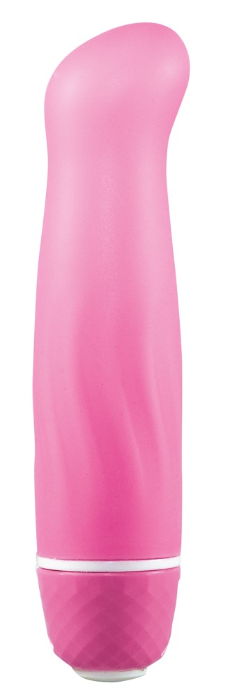 Mini wibrator z pochyloną głową i wałem strukturalnym w modnym kolorze różowym - może być przechowywany super w każdej torebce i jest idealnym towarzyszem podczas podróży... 12,5 cm długości całkowitej, Ø 2,6-2,9 cm. Siedem rytmów wibracji można regulować za pomocą jednego przycisku.