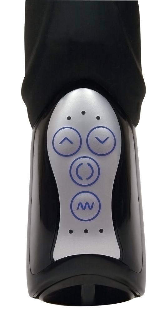 Czarny wibrator żołądź z rotacją stymulacji i wiele miękkich nubs stymulacji. 7 rytmów drgań i 3 prędkości obrotowe (prawo/lewo) można łatwo regulować za pomocą jednego przycisku.