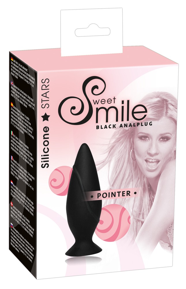 SWEET SMILE - CZARNY STOŻKOWATY KOREK ANALNY Z NÓŻKĄ SSĄCĄ