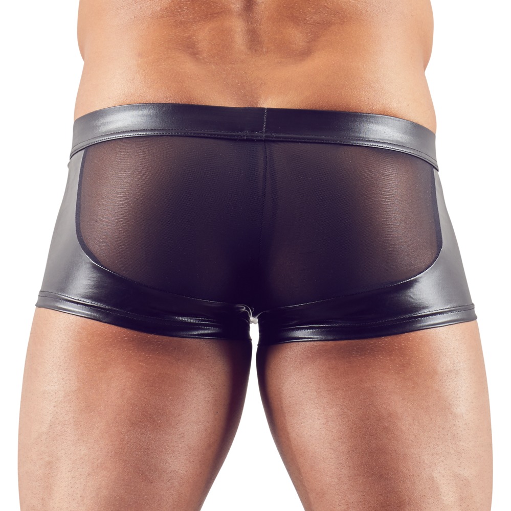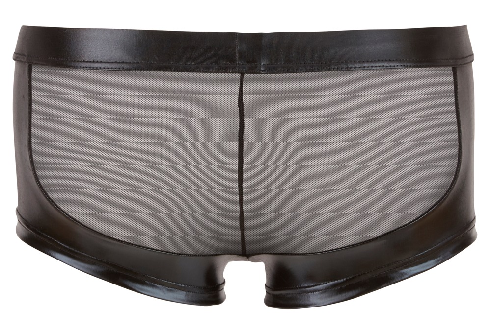 Ekscytujące spodnie wykonane z powernetu z wstawkami wetlook i zamkiem błyskawicznym na torebce. Idealny na gorące noce i męskich, efektownych facetów.