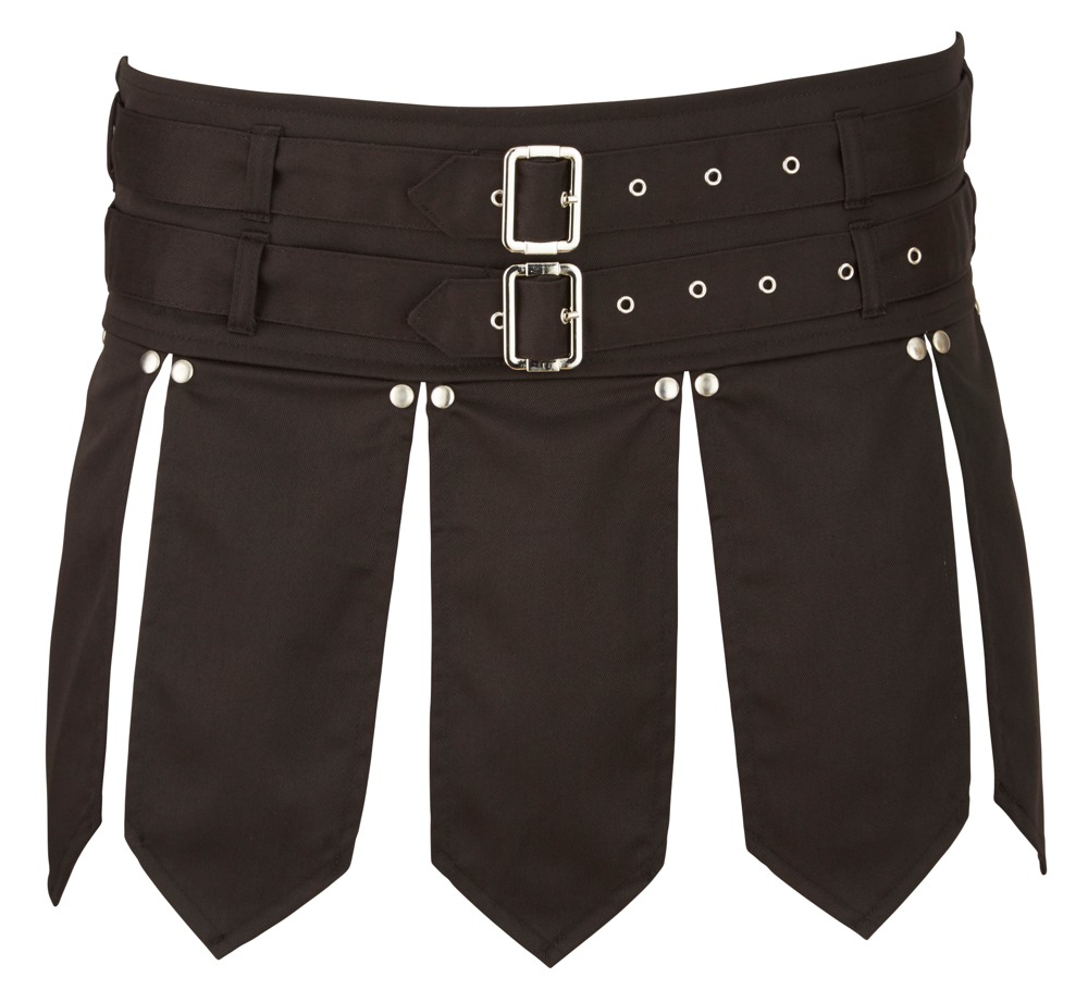 Czarna spódnica w stylu gladiatorki z dwoma paskami. Rozciągnij się z tyłu.