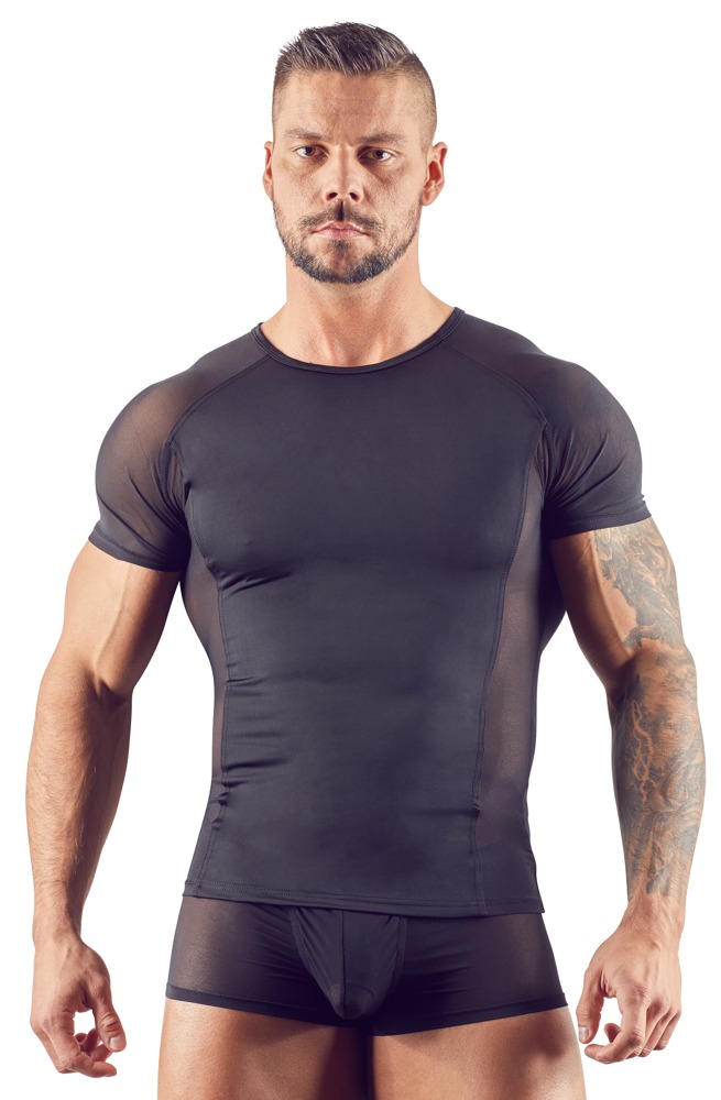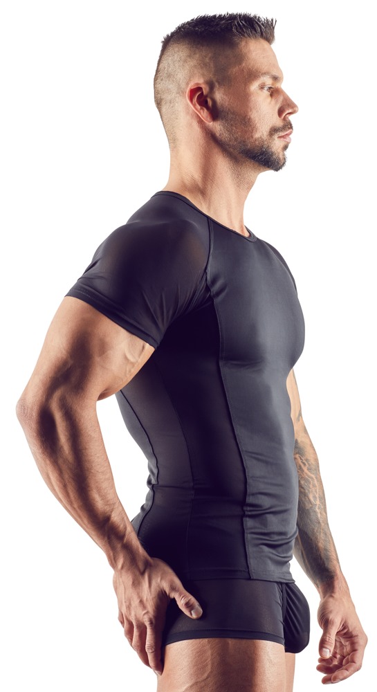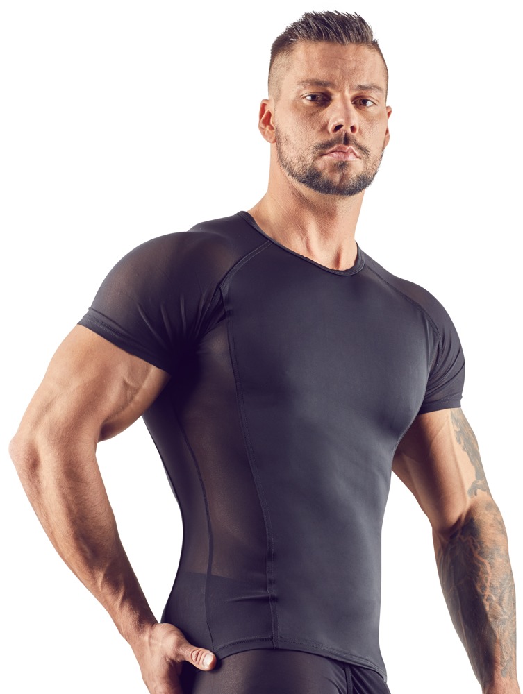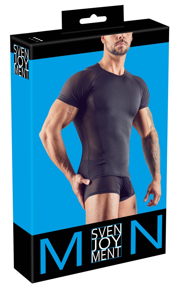 SVENJOYMENT - CZARNA MĘSKA KOSZULKA PRZEZROCZYSTA PO BOKACH
