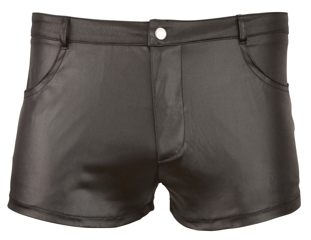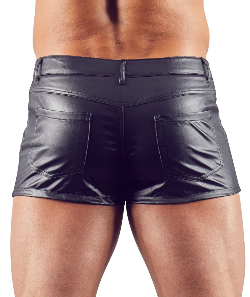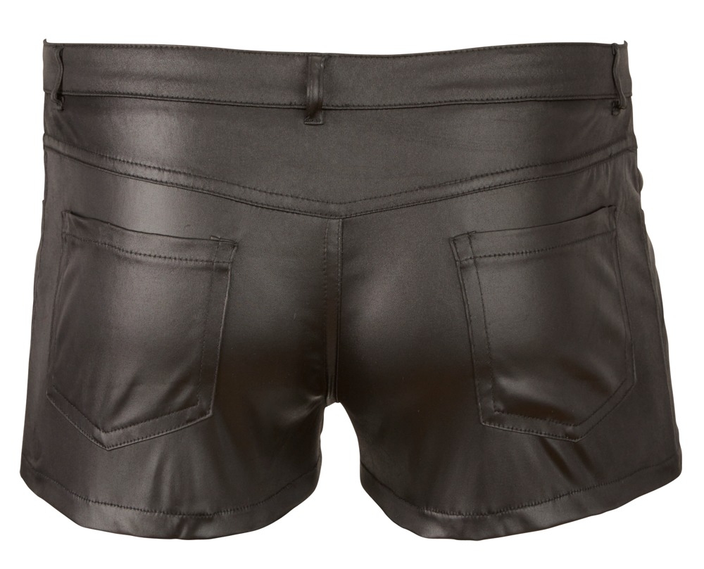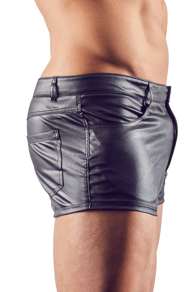 Szorty o dopasowanym kroju z szlufkami i kieszeniami. Błyszcząca skóra dopełnia męski wygląd.