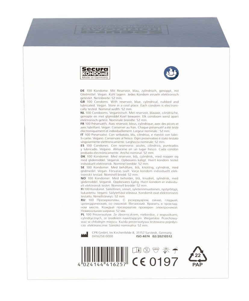 SECURA - NIEBIESKIE PREZERWATYWY Z WYPUSTKAMI STYMULUJĄCYMI 100SZT