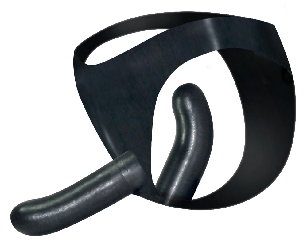 Damskie lateksowe majteczki z mocno wkomponowanymi dildami.
