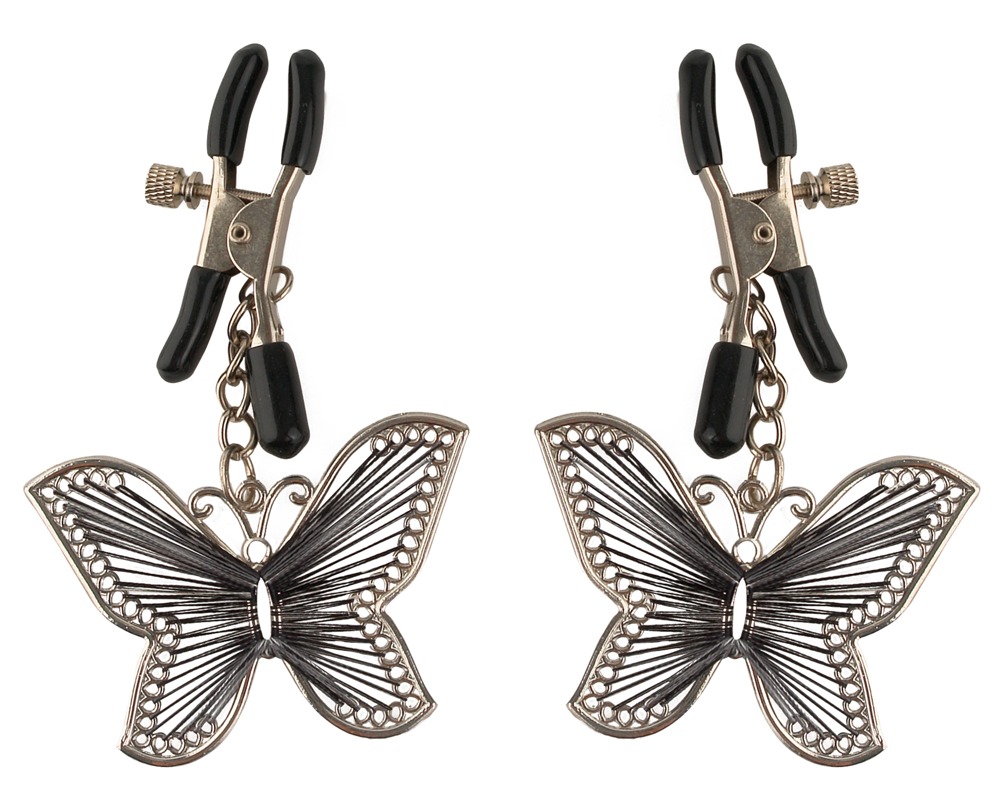 FETISH FANTASY SERIES - ZACISKI NA SUTKI Z OZDOBNYMI WISZĄCYMI MOTYLKAMI