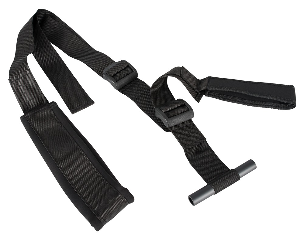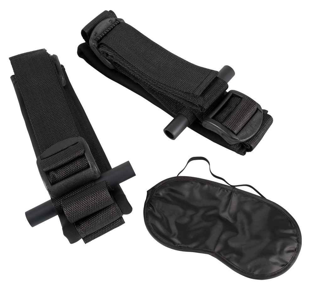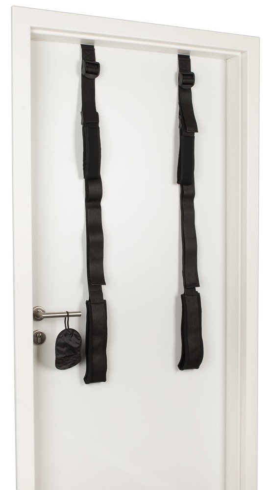 Huśtawka miłosna do przymocowania do drzwi. Montaż nie jest wymagany. Składa się z dwóch czarnych, wielostopniowo regulowanych pasków z pętlami na ręce i nogi na dwóch akrylowych prętach.