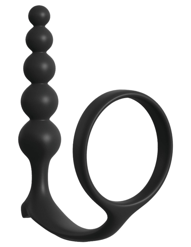 FETISH FANTASY ELITE - 2IN1 ELASTYCZNY PIERŚCIEŃ JĄDER Z KORALIKAMI ANALNYMI CZARNY