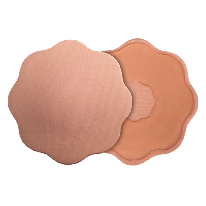 Materiałowe nakładki na sutki wielokrotnego użytku. Zdejmij i zachowaj folię ochronną. Naklej nakładki na suchą i pozbawioną balsamu skórę. Po użyciu upierz je ręcznie ciepłą wodą z mydłem.