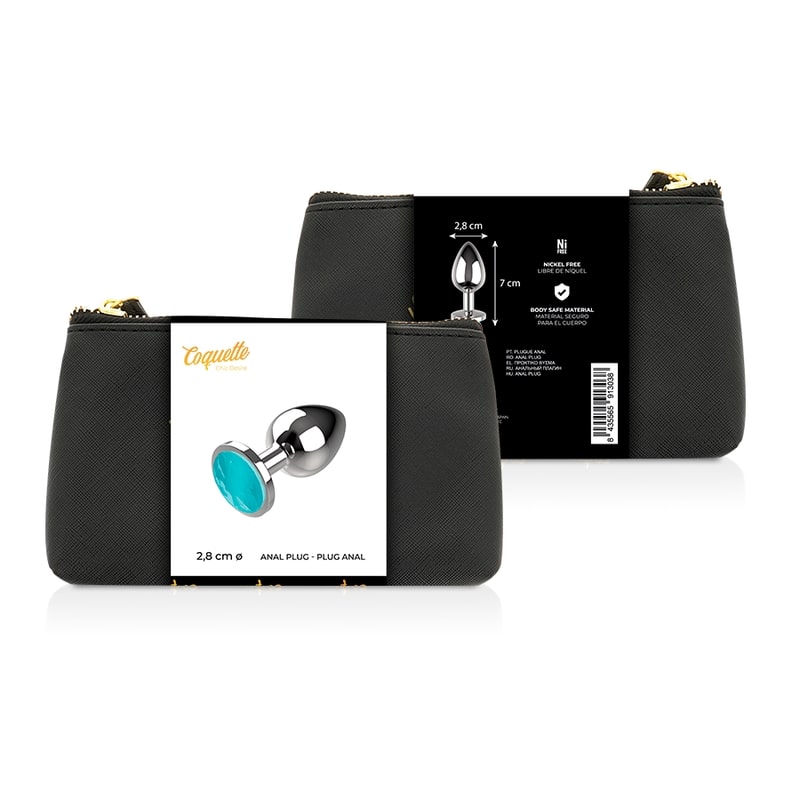 COQUETTE - SREBRNY KOREK ANALNY Z NIEBIESKIM KRYSZTAŁEM S 2,7X8CM