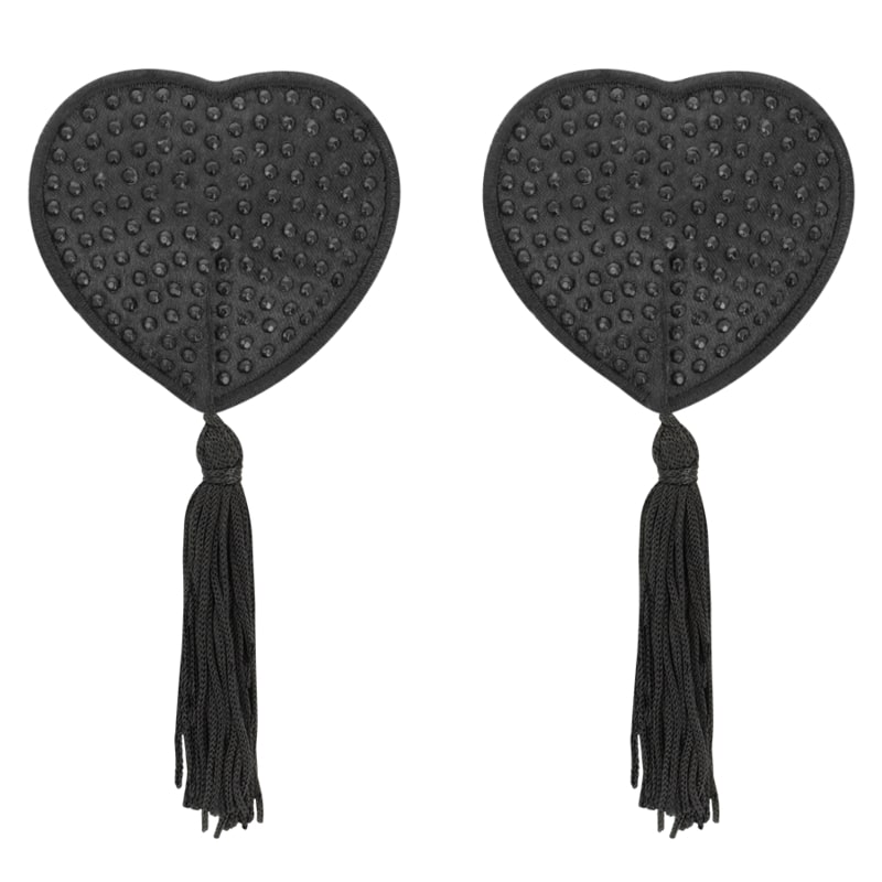 COQUETTE - CZARNE NAKŁADKI NA SUTKI SERCA Z CZARNĄ OZDOBĄ