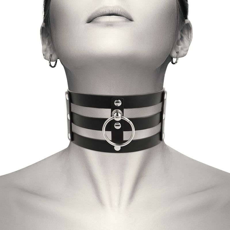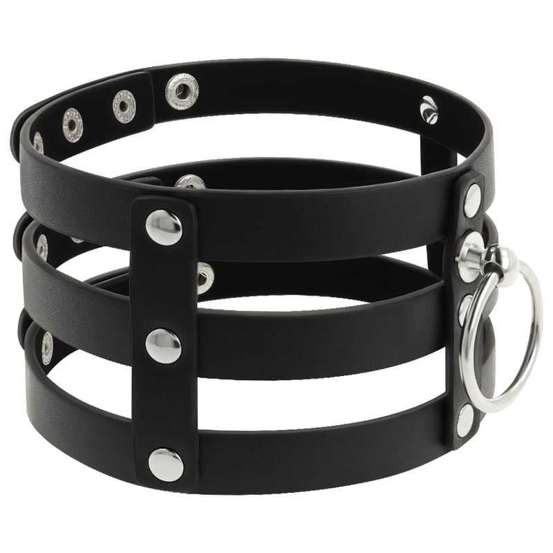 COQUETTE - SKÓRZANY WEGAŃSKI NASZYJNIK Z PASKÓW + PIERŚCIEŃ