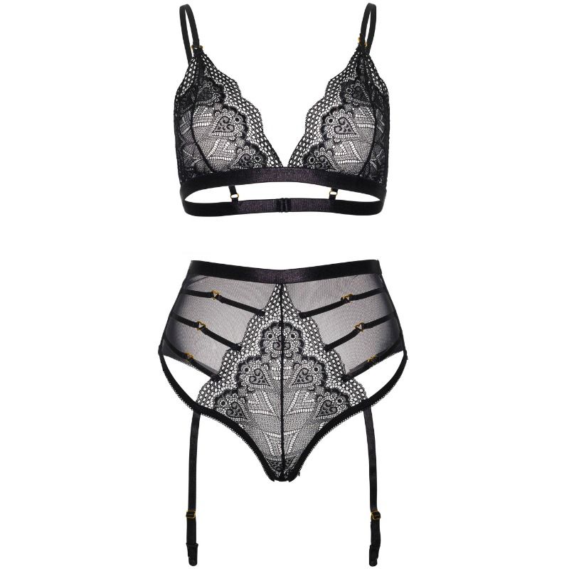 LEG AVENUE - ZESTAW KORONKOWY BIUSTONOSZ I FIGI DO POŃCZOCH CZARNY