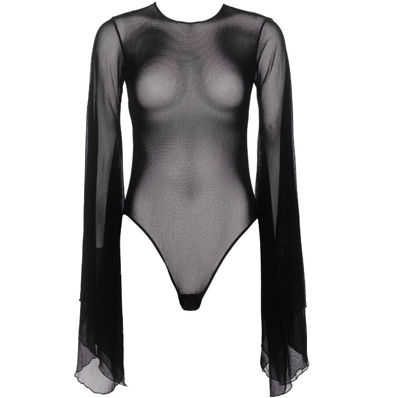 LEG AVENUE - PRZEŚWITUJĄCE BODY Z FALBANAMI STRINGI CZARNE