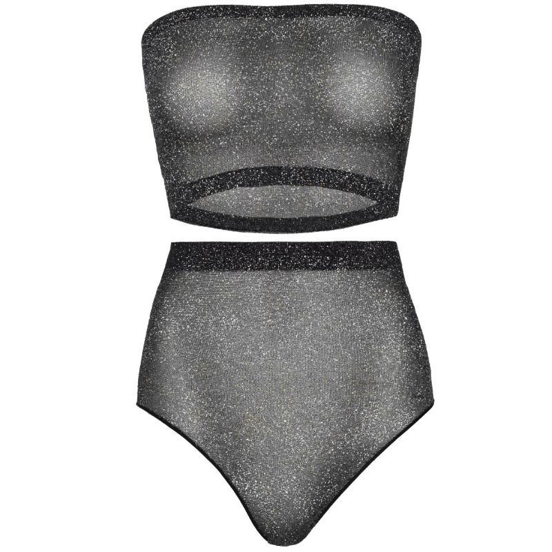 Top bandeau z lureksu z połyskującym spandeksem i pasującymi brazylijskimi majtkami, renomowanej marki bielizny Leg Avenue.