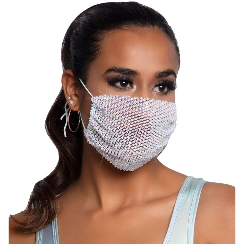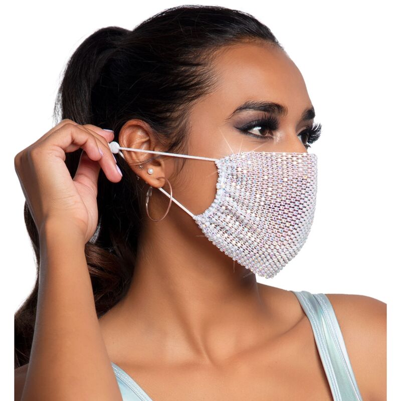 Maska wielokrotnego użytku Harlow rhinestone, ma paski na uszy z tkaniny, które zapewniają najwyższy komfort! Oszałamiające cyrkonie na całej powierzchni zapewniają opalizujący połysk, a ta modna maska na twarz z pewnością wyróżni Cię w tłumie.