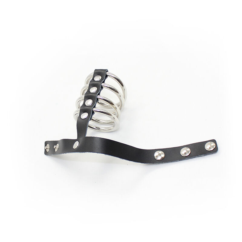 OHMAMA - METALOWA KLATKA ZE SKÓRZANYM PASKIEM NA PENISA