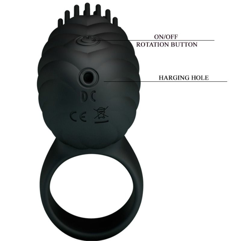 PRETTY LOVE - SILIKONOWY OBROTOWY PIERŚCIEŃ NA PENISA CZARNY