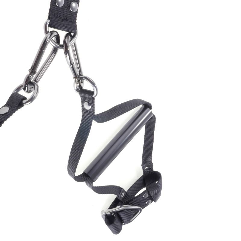 COMMAND. Stworzony do ostrej gry. Zestaw kajdanek do podwieszania COMMAND daje poczucie erotycznej ekspozycji. Wszechstronna konstrukcja zabezpiecza nadgarstki od góry, bezpiecznie podtrzymywana przez solidną śrubę kotwiczącą znajdującą się w zestawie. Zestaw mankietów do podwieszania owija każdy nadgarstek grubymi, wytrzymałymi taśmami nylonowymi o przemysłowej wytrzymałości z w pełni regulowanymi pierścieniami blokującymi ze stali nierdzewnej, co pozwala na kontrolowane, indywidualne dopasowanie za każdym razem. Każdy mankiet do podwieszania jest wyposażony w mocny metalowy pręt do zawieszania, umożliwiający zabawę w podwieszanie.