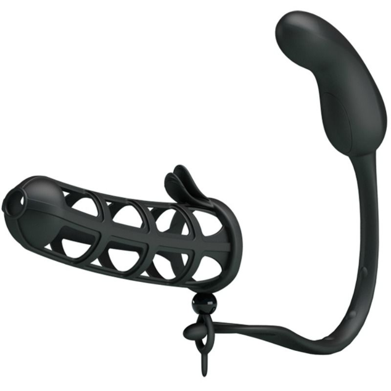 BAILE - NAKŁADKA NA PENISA Z MASAŻEREM ANALNYM CZARNA