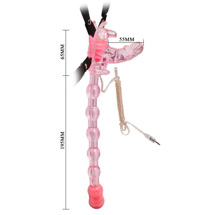 BAILE - STYMULATOR ŁECHTACZKI MOTYLEK Z OGONKIEM STRAP-ON RÓŻOWY
